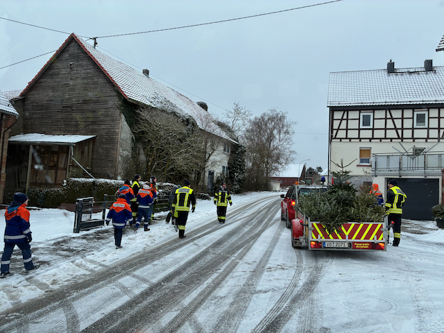 Jugendfeuerwehr Arnshain sammelt Weihnachtsbäume ein
