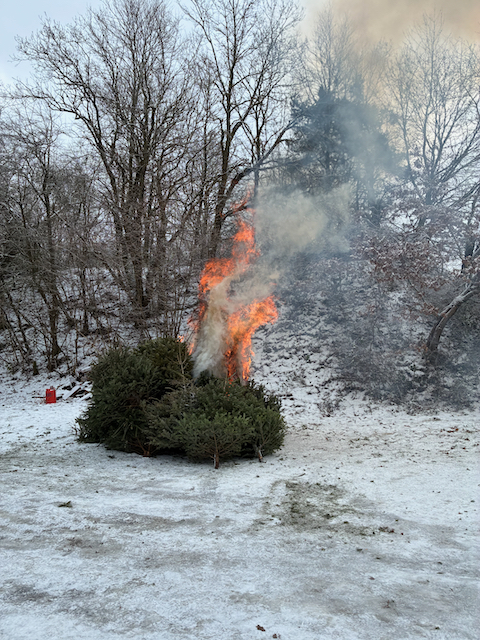 Insgesamt wurden rund 45 Weihnachtsbäume eingesammelt und anschließend zum Steinbruch Arnshain gebracht. Dort ließen die Kinder und Jugendlichen den erfolgreichen Tag bei Kinderpunsch und Würstchen gemütlich ausklingen, während die Bäume kontrolliert verbrannt wurden.