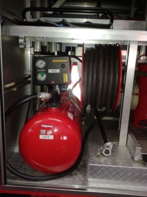 POLY Löschanlagen sind unabhängig von jeder externen Energie, sie benötigen keinen Antrieb. Die Schaum-Wasserlösung ist vorgemischt im Löschmitteltank. Komprimierte Druckluft aus Pressluftflaschen wird mittels Druckregler auf konstanten Betriebsdruck reduziert. Damit wird einerseits das Löschmittel aus dem Tank gepresst, andererseits die Löschmittellösung unter Druck verschäumt.